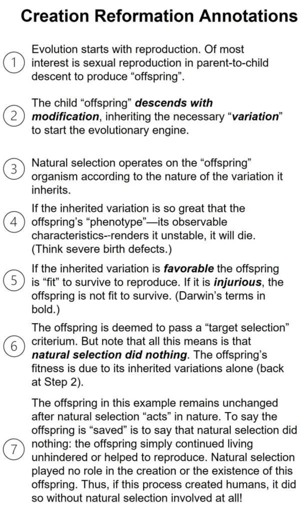 A careful consideration of ResearchGate’s flow chart below and Creation Reformation’s annotated commentary will confirm that natural selection plays no role in the creation or existence of every living thing on earth, including human beings.